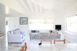 You’ll often find a space like this finished off with light wood furniture, perhaps with an unfinished look and feel, and natural light accented by decorative lighting fixtures. Walking into a room with this style feels like a deep breath while the sun is shining on a 75 degree day.